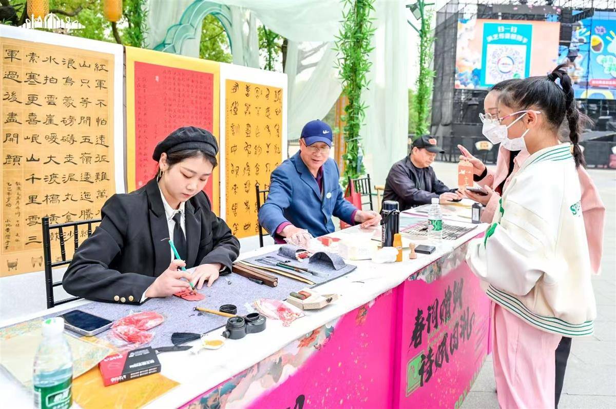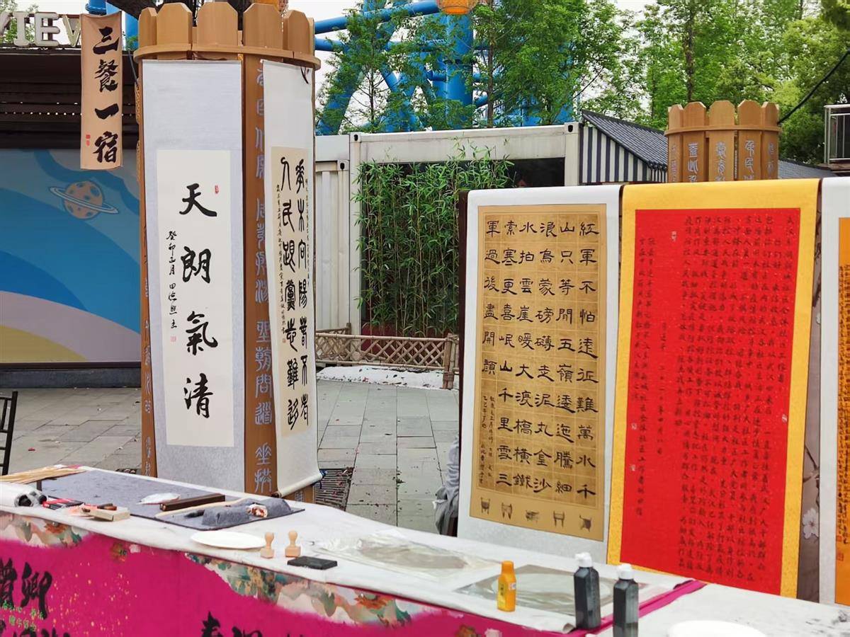 无独有偶,成立才满一年的社区书画队也用居民爱好为社区慈善添彩。春节前夕为居民写福字、送春联,累计送出上百副;端午节举办书画义卖,筹得800多元慈善基金。更让他们自豪的是,今年5月,书画队受武汉欢乐谷邀请,参与景区国潮节活动,现场展示作品并为游客赠送字画,弘扬传统文化。