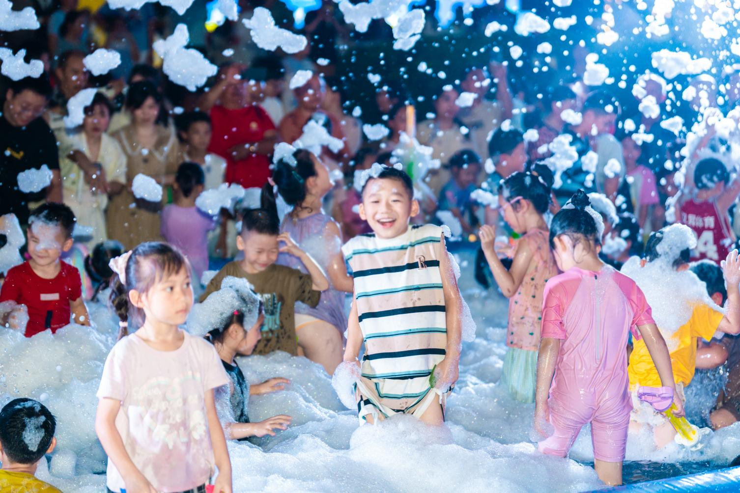 孩童们在泡泡区趣味玩水