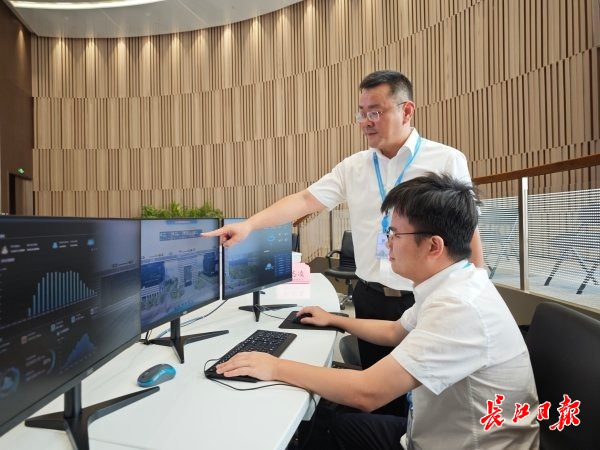 工作人员正在监测中建三局总部大楼能源运用情况。 记者宋磊 摄