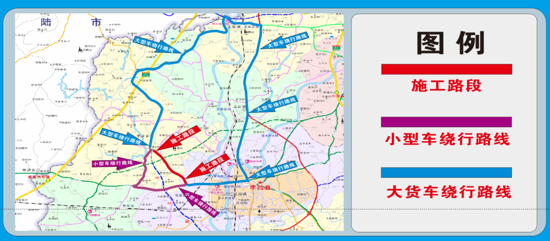 1.孝昌至季店大型车辆绕行路线:从S243孝昌方向、G107王店方向、再经S261王肖线至季店往返;