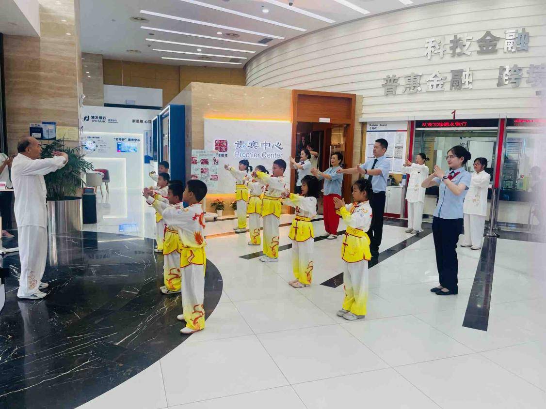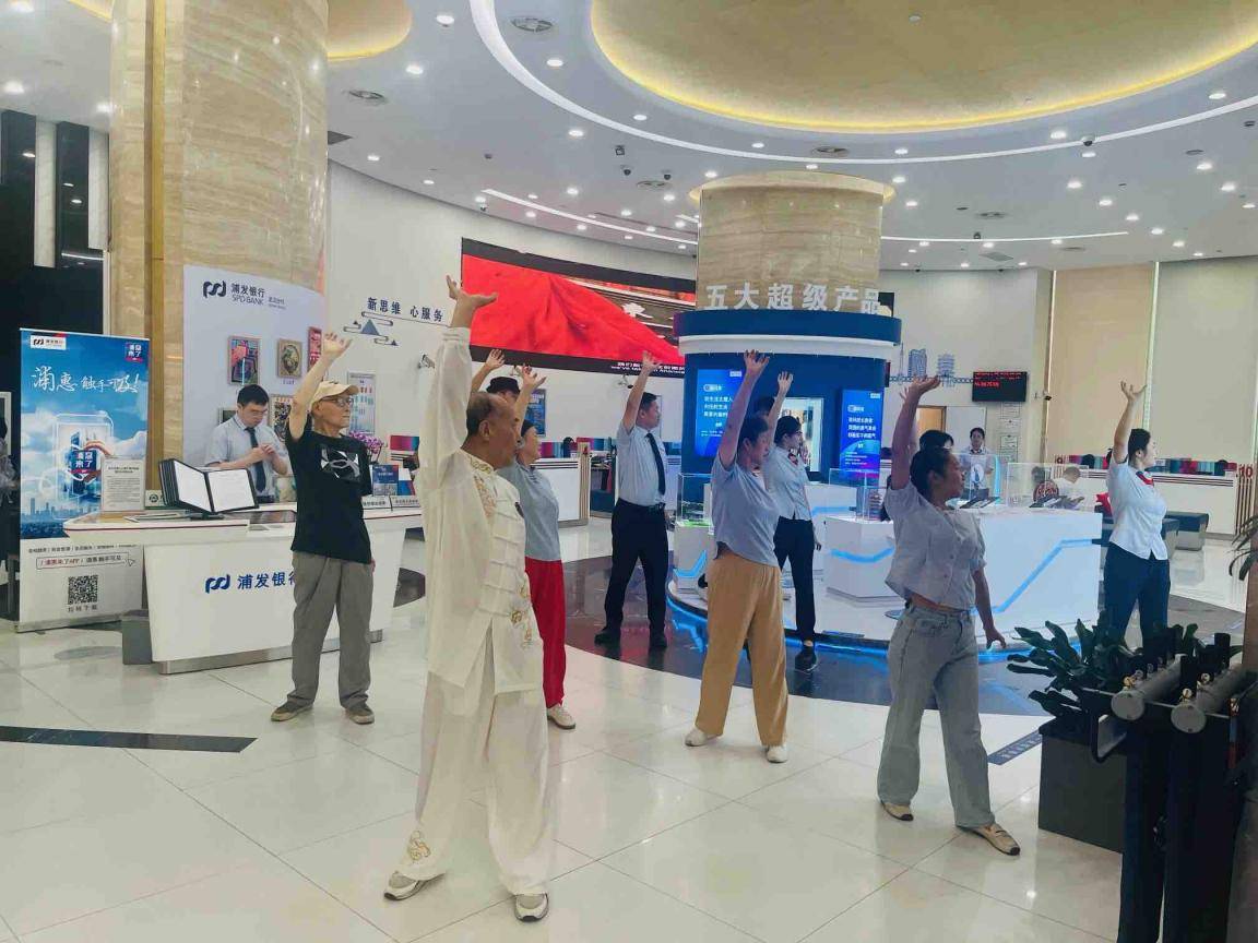 在互动教学环节,活动体验者们在胡炳林的指导下纷纷体验学习。从基础步法到连贯动作,耐心分解招式,并细致讲解动作背后的攻防逻辑与养生理念。“没想到在银行办业务还能学传统武术!”一位现场客户兴奋地表示,“不仅活动了筋骨,更感受到了中华武术的独特魅力。”