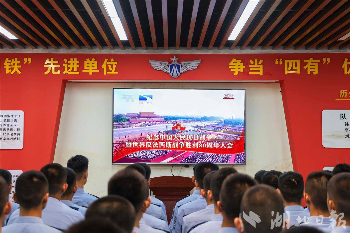 9月3日上午,空军预警学院组织全体官兵收看纪念中国人民抗日战争暨世界反法西斯战争胜利80周年大会电视直播。