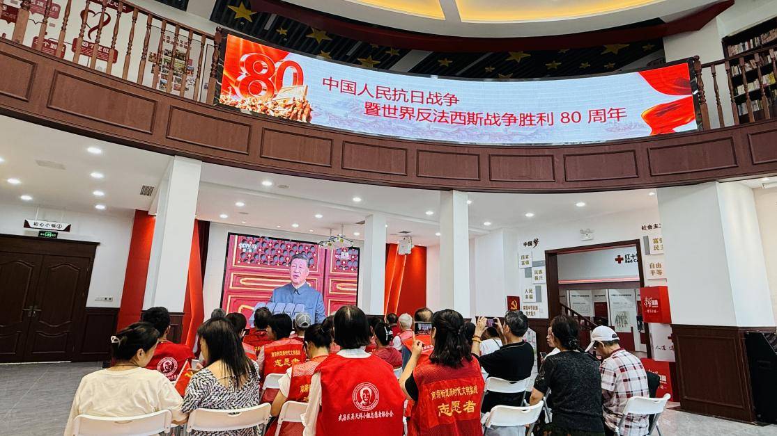 湖北日报讯(通讯员张丽)9月3日上午9点,武汉市武昌区南湖街道宝安社区新时代文明实践站内热闹非凡,社区各领域的志愿者齐聚一堂,共同观看“中国人民抗日战争暨世界反法西斯战争胜利80周年”阅兵式。