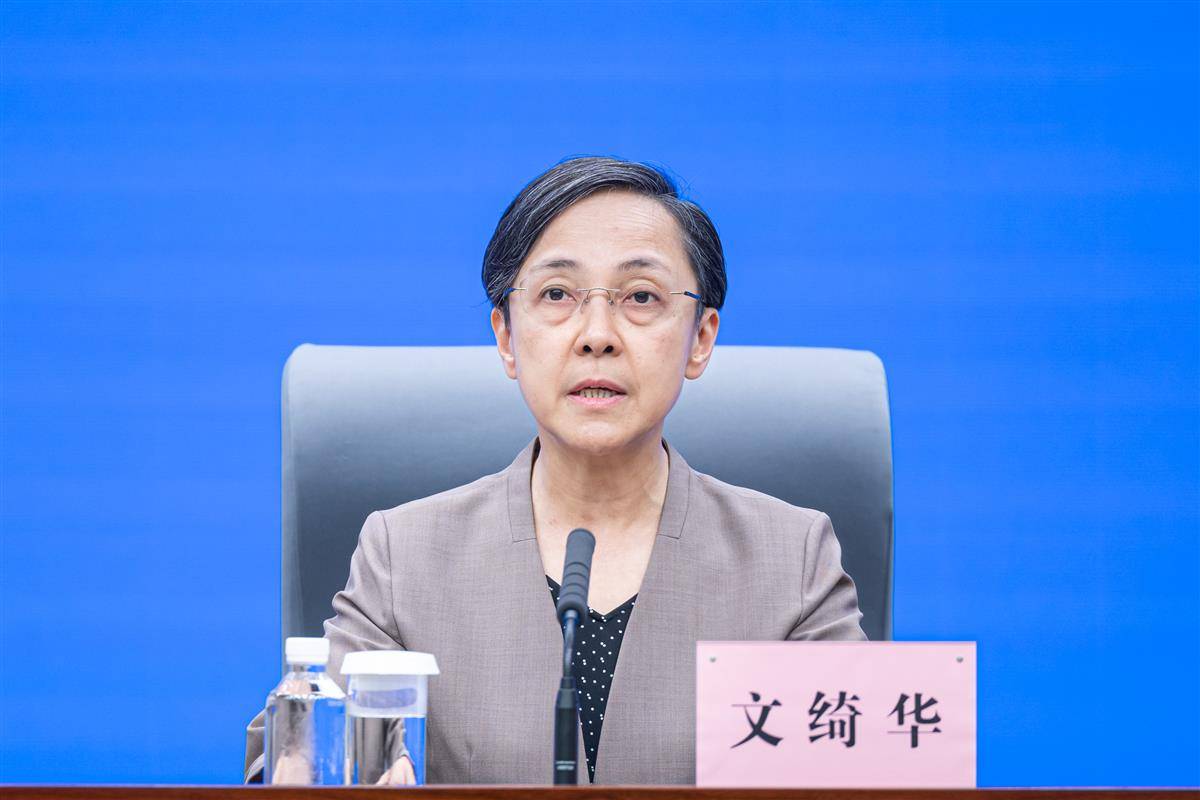 湖北省政府港澳办主任章笑梅回答记者提问。