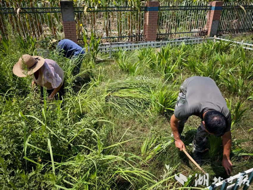 人工湿地是三里坡村重要的生态处理设施和景观节点,不仅承担着生活污水自然净化的功能,种植的大量花卉也是村民日常休闲的好去处。时值夏秋之交,雨水充沛,湿地内及周边的杂草生长迅猛,不仅影响了湿地的美观度,过度生长的杂草还易滋生蚊虫,藏匿垃圾,反而影响了村里的卫生条件。