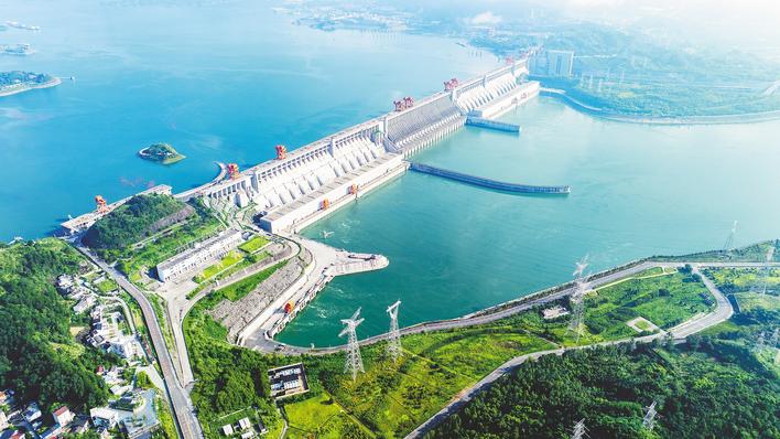 9月1日,俯瞰三峡电站及外送输电线路。截至8月31日,三峡电站累计发电量突破1.8万亿千瓦时,三峡电站总装机容量达2250万千瓦。(视界网 周仕伟 摄)