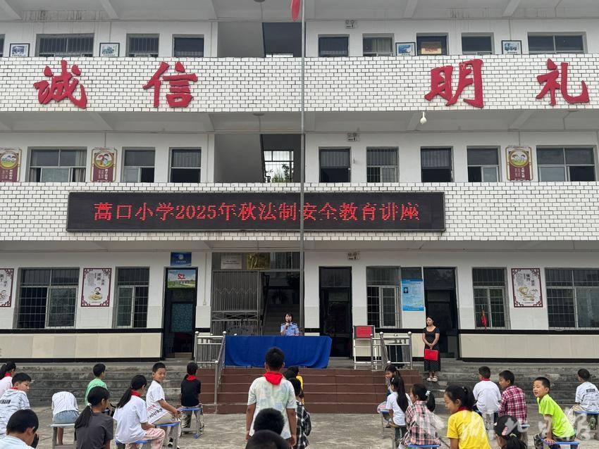 典礼上,法治副校长朱警官以“少年有梦,法不可违”为主题展开讲座,结合乡村实际,用案例讲解防校园欺凌、电信诈骗、性侵害及毒品危害等,教学生用法律保护自己,还提及该校武当武术进校园特色,鼓励学生以武强身、以法护行。