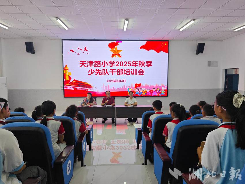 湖北日报客户端讯(通讯员 李乐 朱胜男 李怀明)9月4日下午,丹江口市天津路小学少先队大队部联合安全办在学校报告厅召开2025年秋季少先队干部培训会。本次培训聚焦安全管理、卫生监督等核心任务,紧扣“善美班级”评选要求,明确少先队干部岗位职责,为新学期校园建设与班级发展筑牢基础。