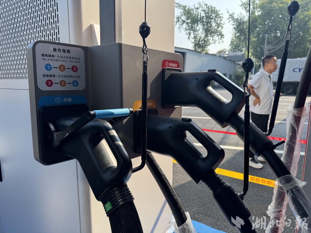 湖北日报全媒记者在现场看到,与普通充电桩不同,该超充桩配备3个不同充电枪,其中1个为水枪。据介绍,这是专为设备降温设置的,可保证充电枪及电池内部温度处于适宜工作的温度,不仅散热效率相比传统风冷技术大幅提升,而且全液冷循环系统取消了散热风扇,可广泛应用于煤矿、钢厂等多粉尘的恶劣工况。