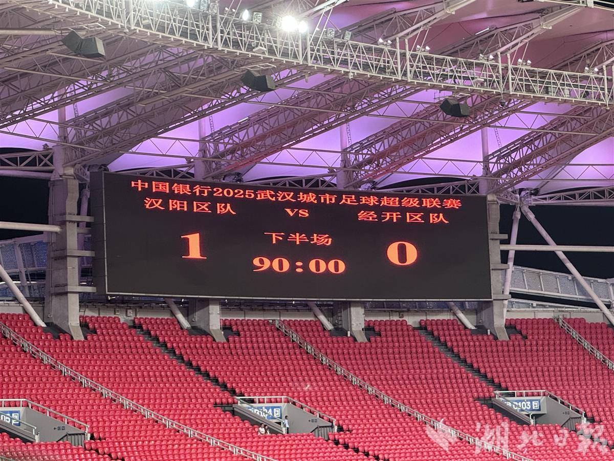 当晚,“汉超”第一阶段第四轮城区小组赛,汉阳对阵经开,吸引近万名球迷现场观赛。