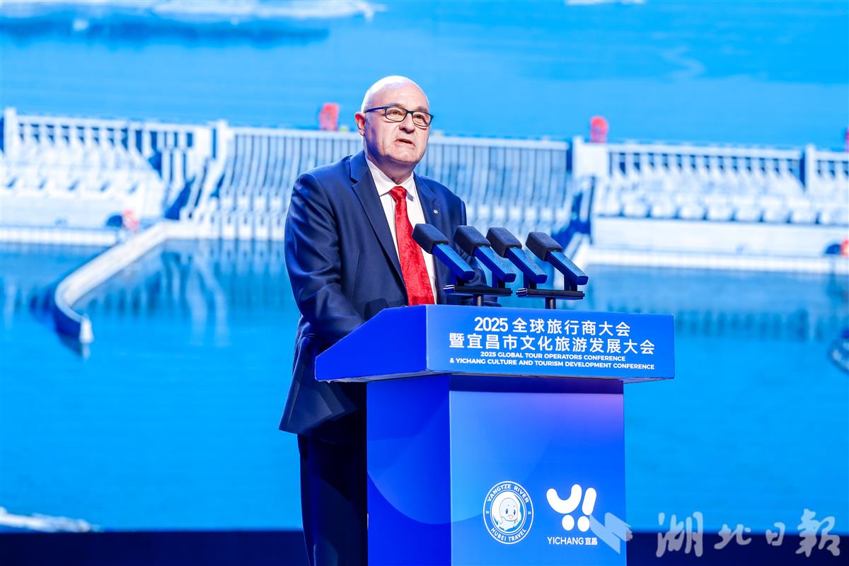 国际旅游联合会主席埃里克·杜吕克在演讲中说,自1998年担任国际旅游联合会主席以来,曾多次到访中国,其广袤的疆域与深厚的文化底蕴令我印象深刻。湖北雄伟的标志性山川、绵延数千年的文化,都给他留下了深刻印象。武当山、黄鹤楼、古老的青铜编钟,还有伟大诗人屈原的诗篇,都是他与友人交谈时常提及的话题。他表示,将为湖北旅游在欧洲市场的推广提供媒体宣传、精准推广活动及国际赛事等支持,激发欧洲游客前往湖北旅游的热情。
