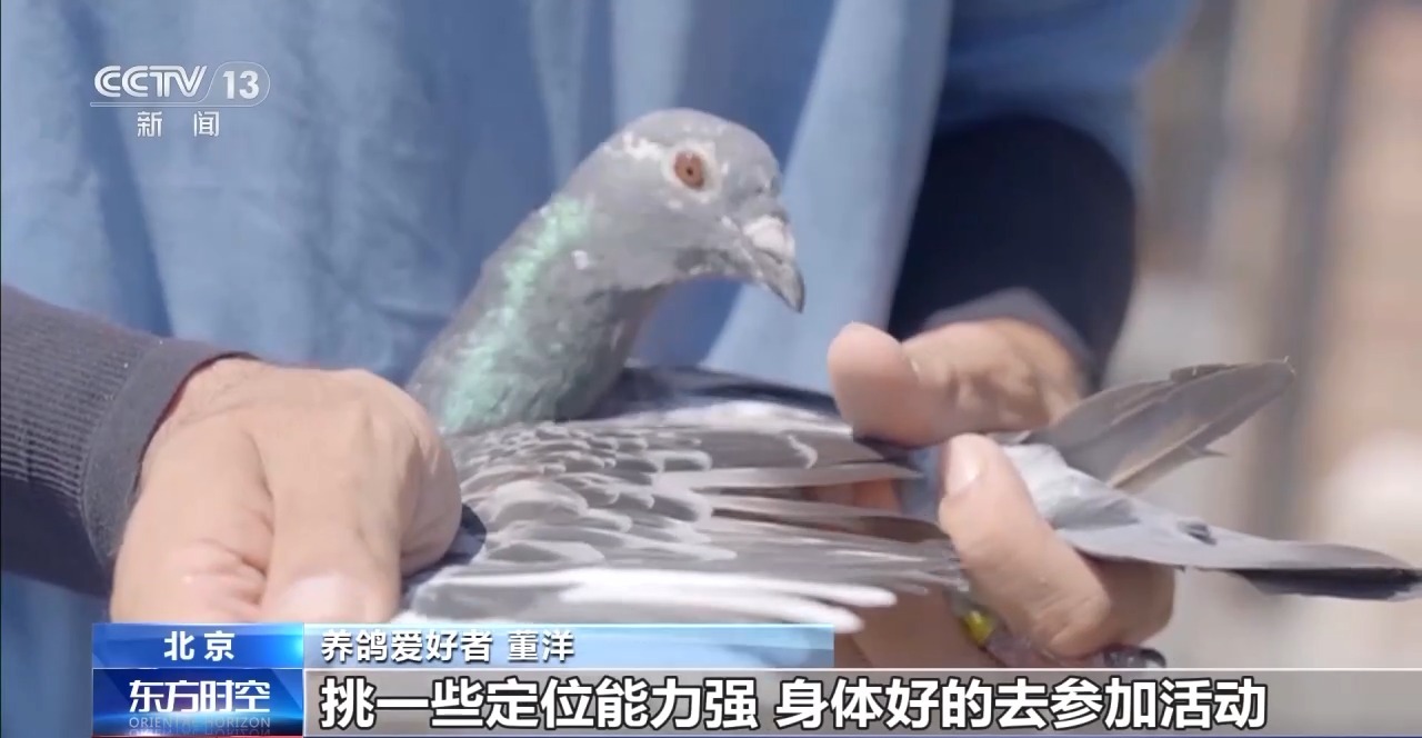 养鸽爱好者 董洋:这个就是我今年挑选参加活动的鸽子,这鸽子不让攥,因为它岁数小又活力好,肌肉饱满。挑一些定位能力强、身体好的去参加活动。前一天也不会喂很多,一般喂黄豆、绿豆,蛋白质含量比较高。