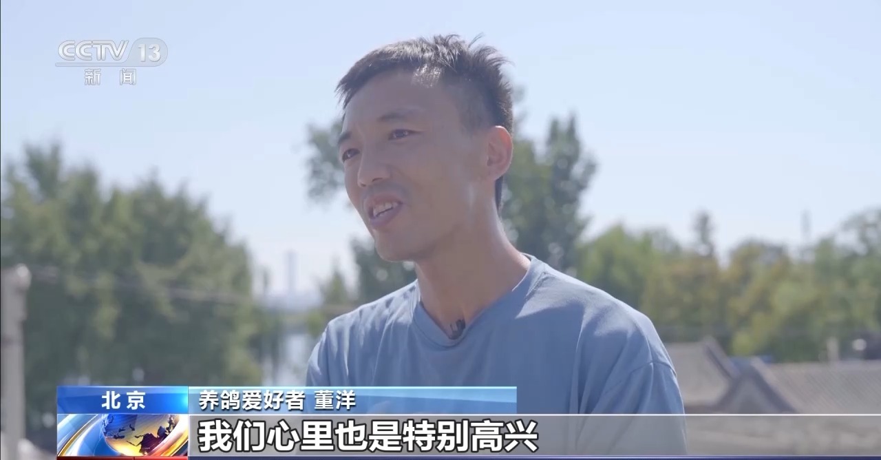 养鸽爱好者 董洋:我们养鸽子最大的快乐之一就是参加国家的大型活动。天安门一放飞,我们立刻上房来等着鸽子回来。看到它回来那一瞬间,我们心里是特别高兴,那种心情真是溢于言表。参加这种大型活动我们心里特别自豪,也光荣。就跟我们参加活动一样,替我们看了一眼。