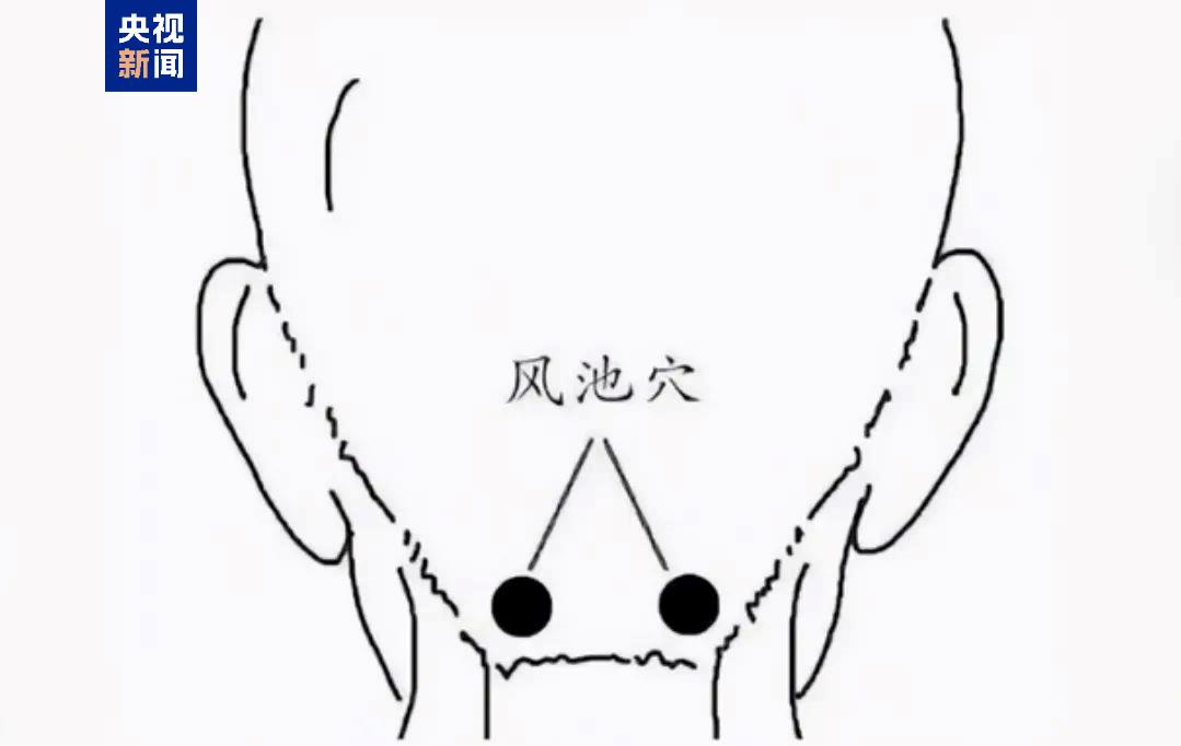 双手拇指按压颈后风池穴3分钟,有助于缓解疲劳。