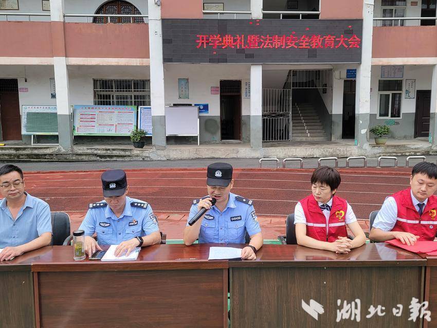 湖北日报客户端讯(通讯员 王俊锋 祝东洵)近日,土关垭镇中学全体师生齐聚学校操场,举行2025 - 2026学年开学典礼暨法制安全教育大会。土关垭镇派出所袁警官作为特邀嘉宾,为同学们带来了一场意义非凡的安全教育课。