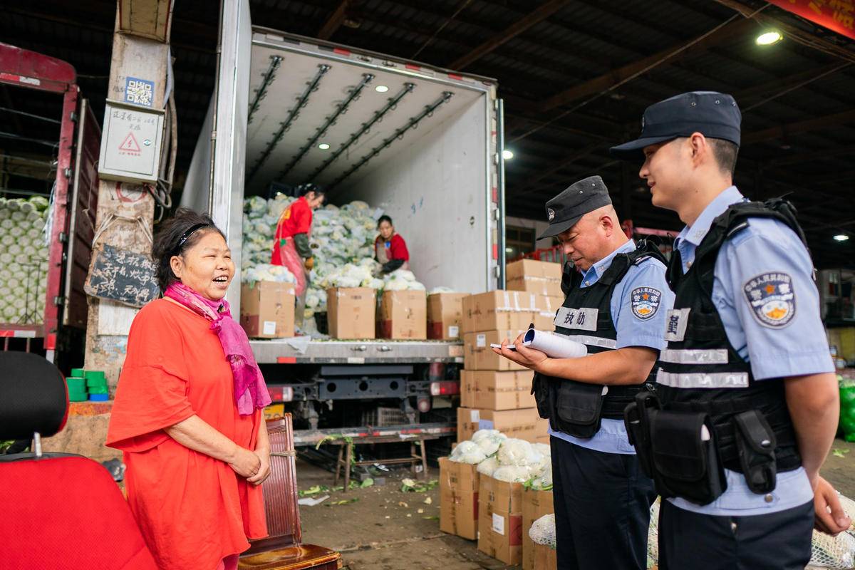 作为武汉重要的农副产品集散地,这里曾因买卖纠纷、货运矛盾频发让商户头疼不已。青菱街白沙洲市场派出所创新打造“警社共治”模式,建立全市首个7×24小时社区综合警务室,对大市场实施精准化管理服务,确保矛盾纠纷“快速响应、及时处置”,同时将党员商户纳入义警队伍,义警队伍化身信息员、联络员、安全员全方位参与市场治安治理,将矛盾纠纷化解在源头。