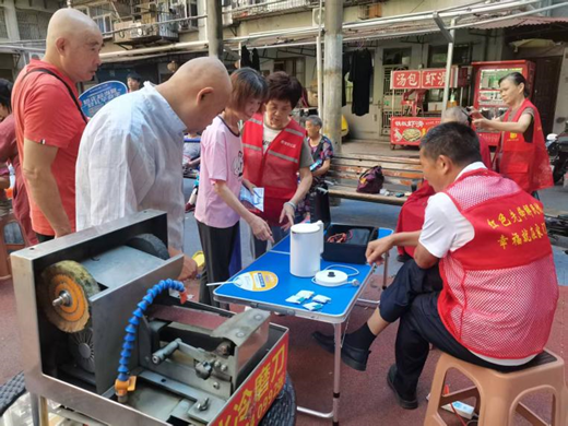 活动现场设置生活服务、健康关怀、慈善公益等多个便民服务区。生活服务类摊位上,磨刀师傅操作电动水冷磨刀器,将锈钝刀具磨得锃亮;理发志愿者手法娴熟,为居民打造清爽发型;修鞋师傅细致修复开胶鞋子,小家电维修师傅则通过拆解、检测、更换配件,让“罢工”的电水壶、电饭煲恢复功能。针对65岁以上老年人,活动还增设爱心采耳服务,精准满足老年群体“微需求”。家住任冬新村的陈女士接过修好的电水壶时喜笑颜开,称水壶坏了数月正愁无处维修,感谢社区提供免费服务;蔡婆婆也表示,年纪大了办事不便,社区活动切实为老年人着想,十分贴心。