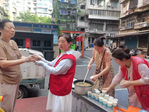 在慈善基金募捐区,社工向居民详细讲解社区慈善基金的救助范围与使用规范,倡导“人人献出一点爱”的公益理念,居民们纷纷现场扫码捐赠,传递社区温情。此外,现场还准备了冰镇绿豆汤,志愿者将清热解暑的绿豆汤送到居民手中,驱散秋日燥热。