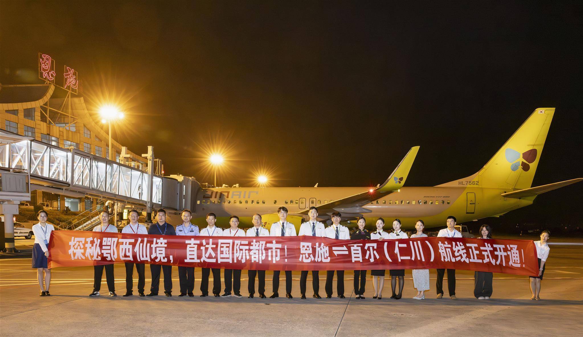 湖北日报讯(记者蔡俊、通讯员陈航)9月8日凌晨,搭载81名旅客的LJ885航班从首尔仁川飞抵恩施,平稳降落在恩施许家坪国际机场,标志着恩施至韩国首尔国际直飞客运航线正式开通。