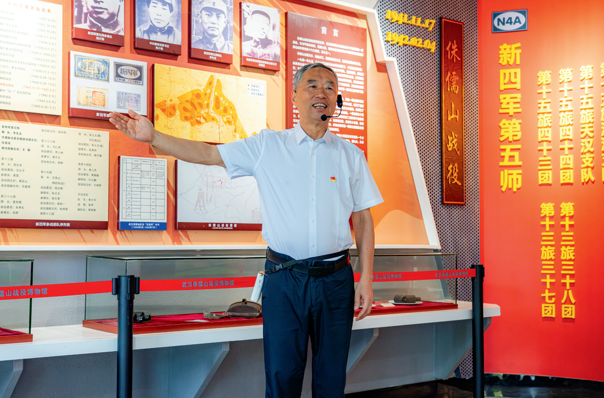 这位年过七旬的馆长,虽身形不算高大,却腰杆笔直、双目炯炯,讲起革命故事时声如洪钟,手势铿锵,仿佛将听众一同拉回了烽火连天的战场。