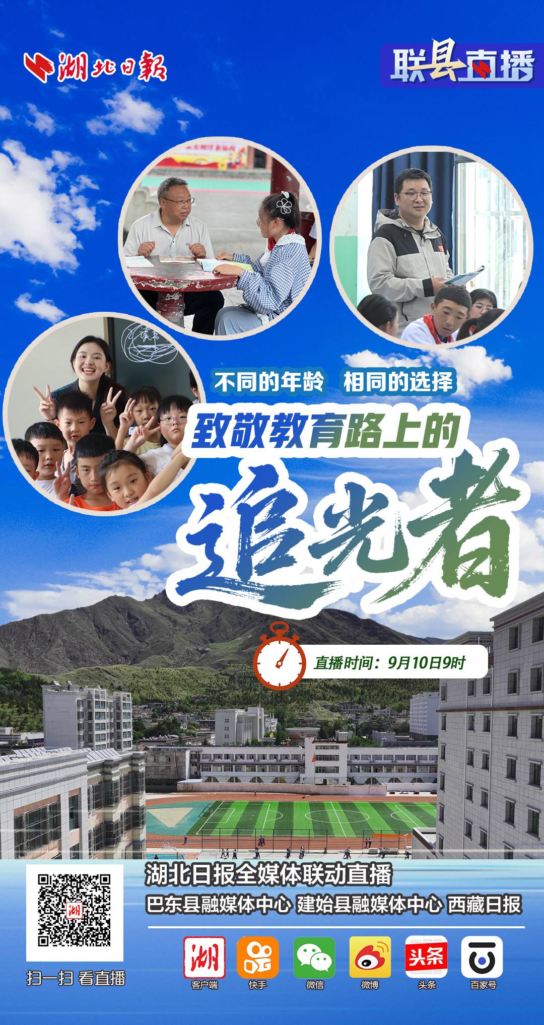 9月10日9时,湖北日报联合巴东县融媒体中心、建始县融媒体中心、西藏日报开启教师节特别直播,一起倾听追光者的故事,向每一位扎根基层、默默奉献的教育工作者致敬!