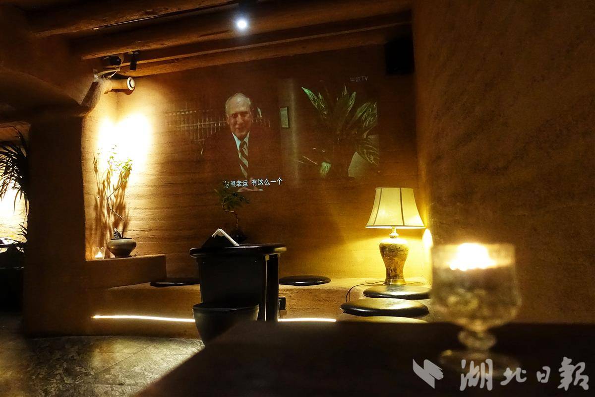 “第一次来的时候,我就想到了曾经去过的甘肃洞窟。”付佳丹说,她们决定保留原始结构的神秘感,将整个空间打造成红泥洞穴。三个隔间依次排开——入室小桌、调酒吧台、观影区,灯光温暖却不压抑,仿佛一座现代版的“地下敦煌”。
