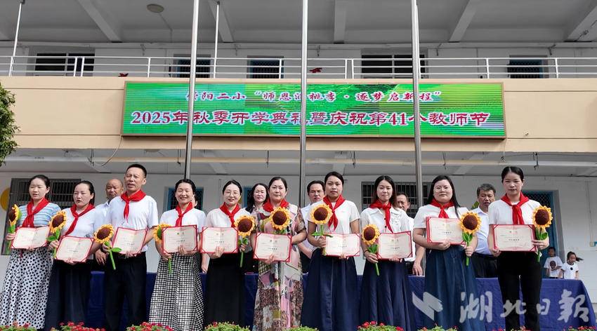 湖北日报客户端讯(通讯员吴文君 王伊娜)9月10日上午,崇阳县第二小学围绕“师恩润桃李·逐梦启新程”为主题,举行2025年秋季学期开学典礼暨庆祝第41个中国教师节活动。