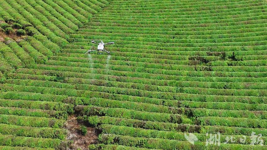 科技赋能正为传统茶园管护带来新变化。在崇阳县铜钟乡近1000亩的五彩茶园,正进行无人机病虫害防治作业。这种高科技管护方式大大提高了管护效率,短短1小时内,便能完成千亩茶园的管护任务。与此同时,在白霓镇石山村芽旗香有机茶基地,数名茶农正进行修枝等管护工作,通过修剪,让茶树保持良好的树形和旺盛长势。