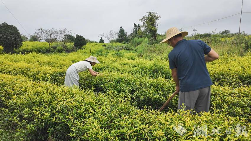 9月9日,在崇阳县沙坪镇黄茆村千亩生态茶园,茶园负责人盛华东正带领茶农穿梭在茶树间,清除根部杂草,修剪过密枝条与老化枝丫,保障茶树的营养供给,保留充足的通风透光空间。