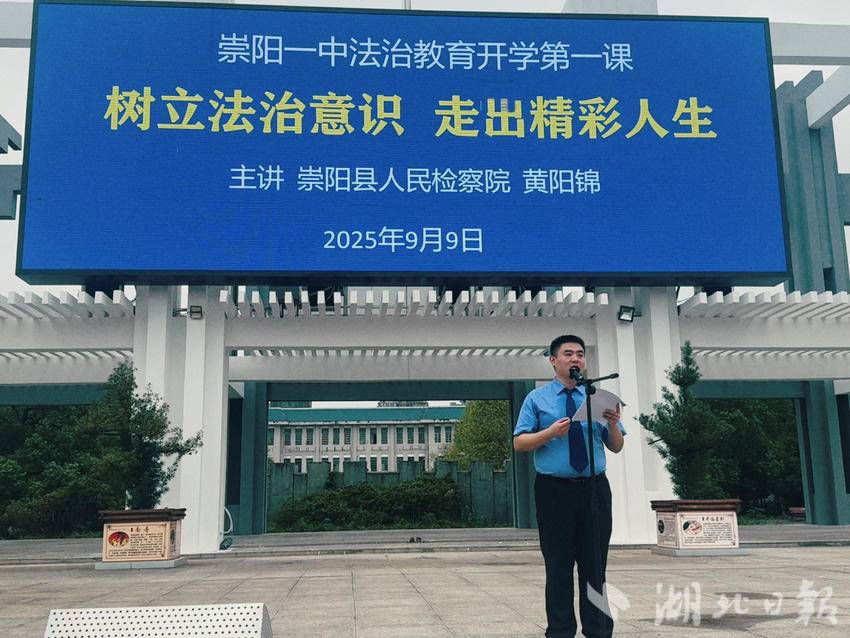 湖北日报客户端讯(通讯员龚水蓉 李春)9月9日,崇阳一中法治教育“开学第一课”开讲,崇阳县人民检察院副检察长黄阳锦应邀为全体学生上了一堂题为《树立法治意识 走出精彩人生》的法治教育课,帮助同学们更好地树立法治观念,增强自我保护意识,明确法律底线,走好人生的每一步。