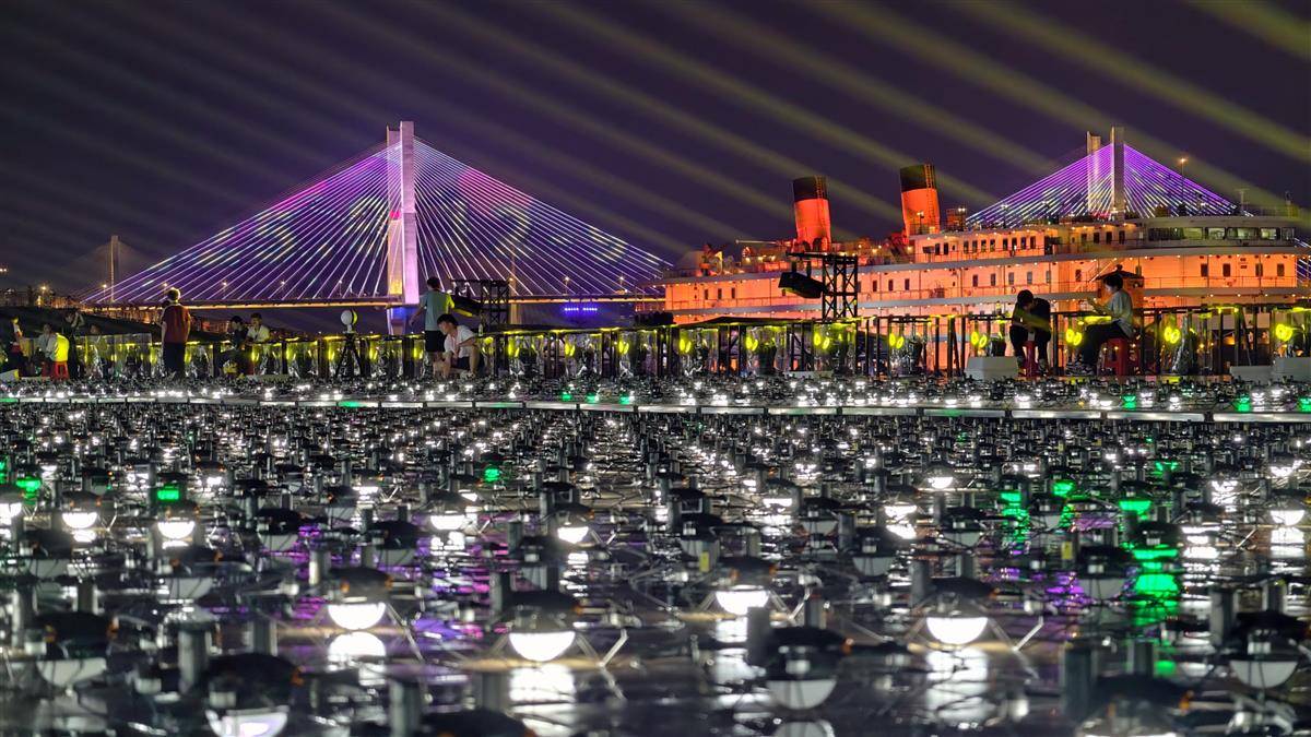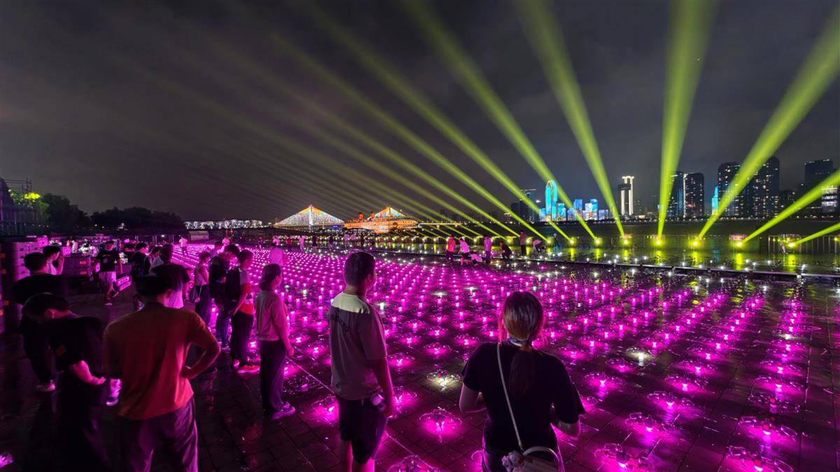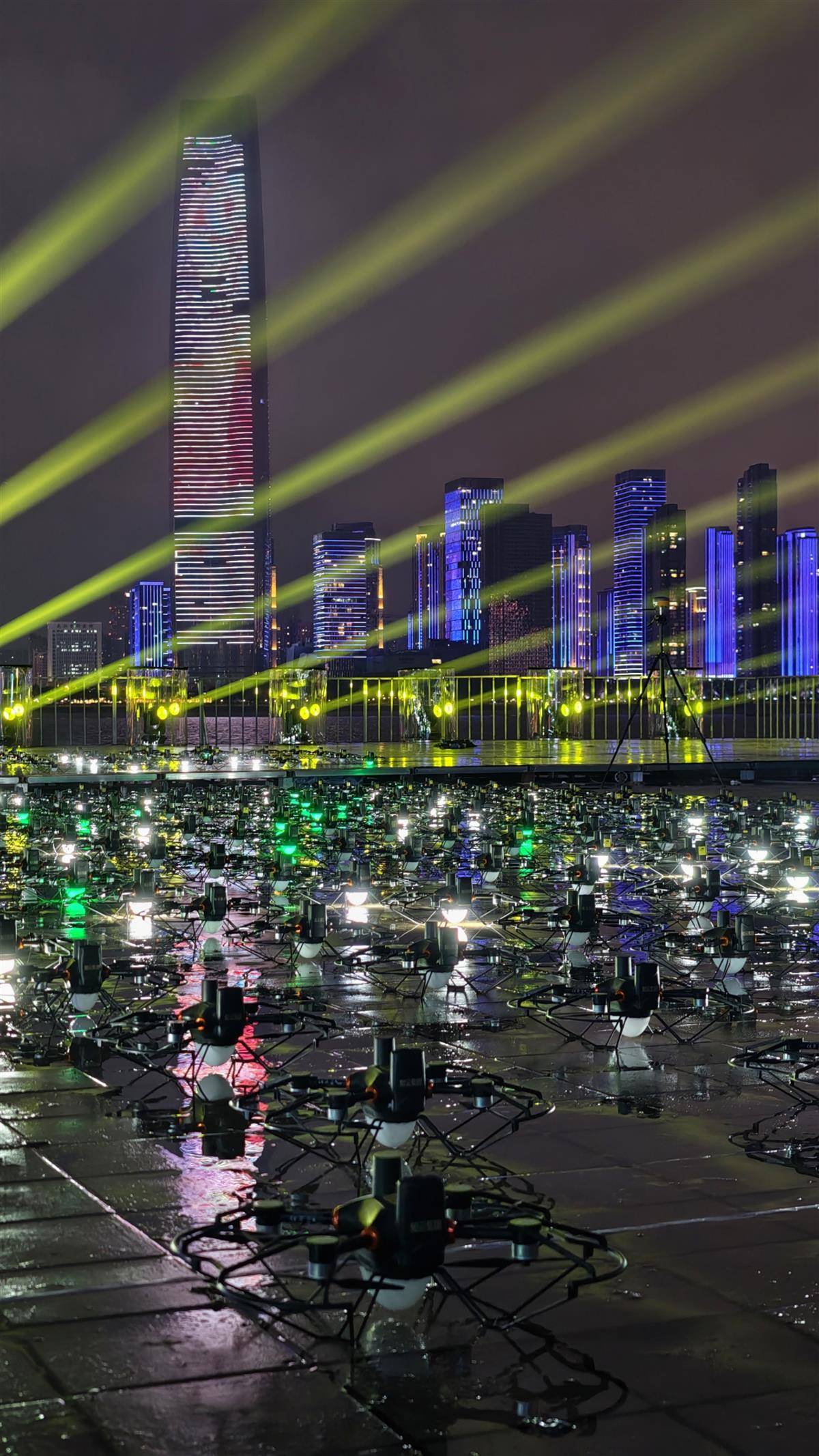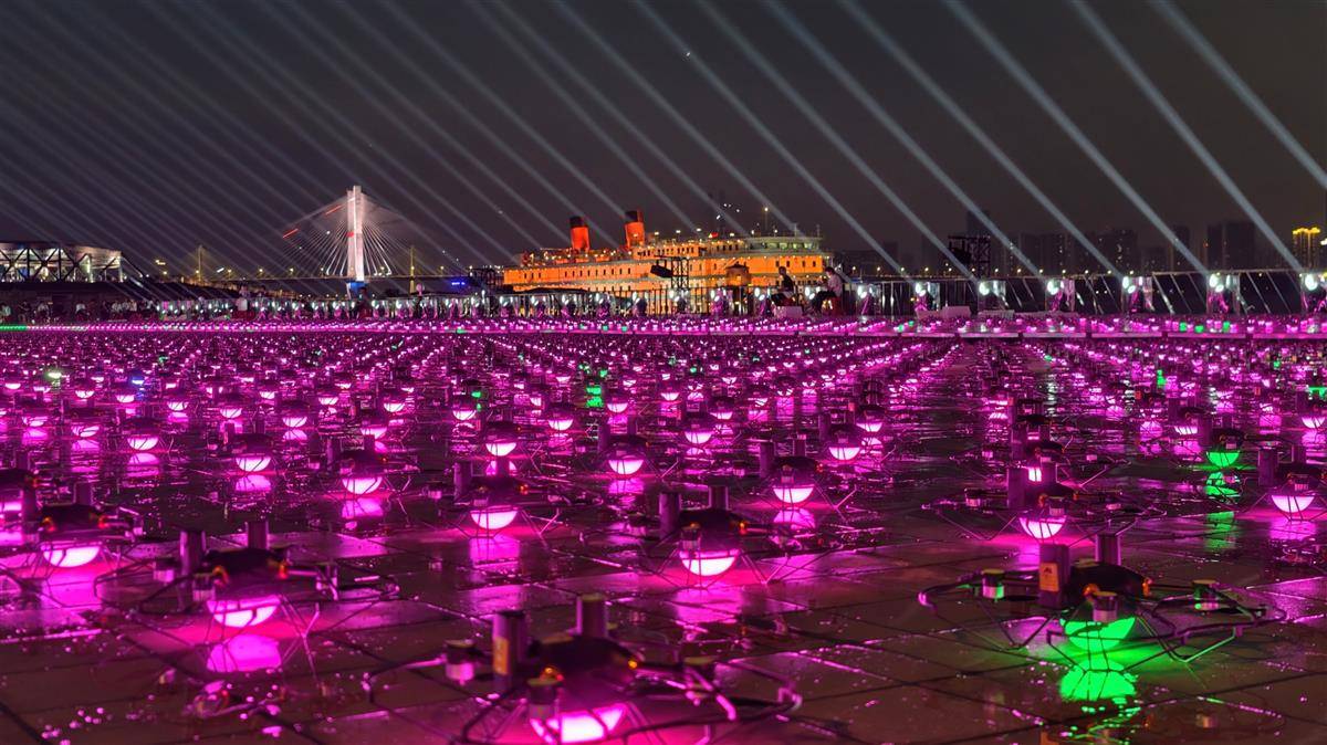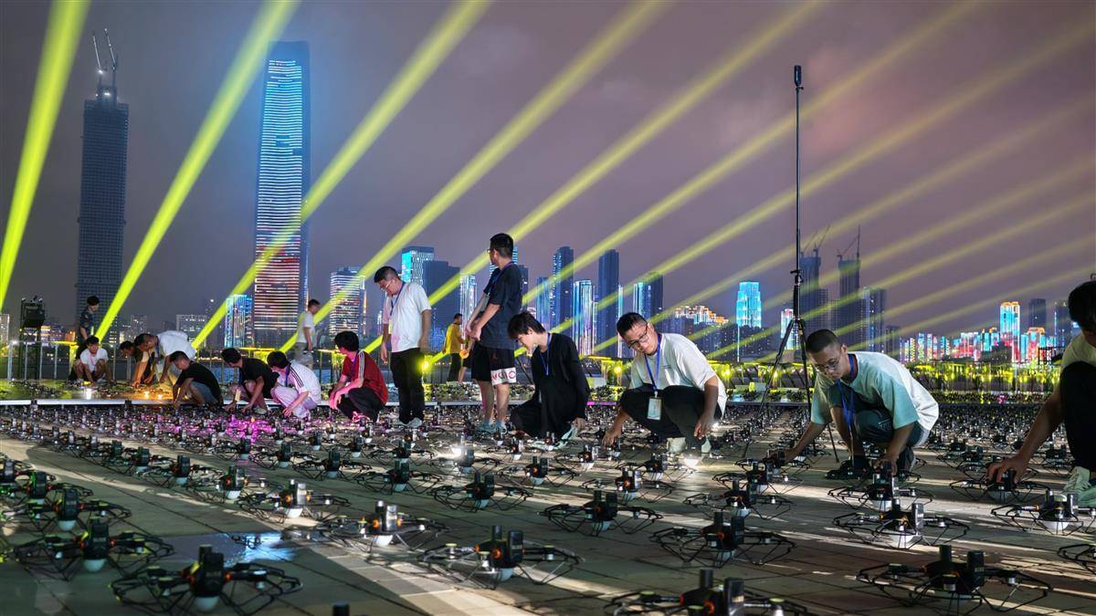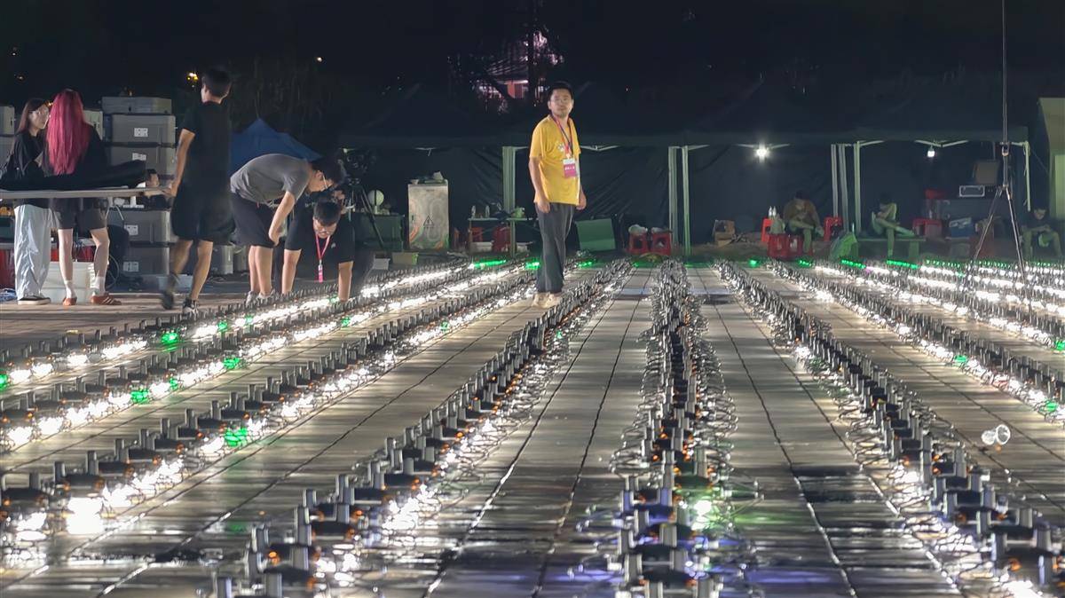 2025年9月10日晚,第二届长江文化季开幕式在汉口江滩三阳广场开展预演彩排。其中,无人机编队将以江天为幕试飞演绎“长江诗意”,彩排开始前工作人员拉起软尺对无人机阵列进行位置调整,保障无人机表演最终能呈现出璀璨夺目的效果。(湖北日报全媒记者 陈少哲 摄)
