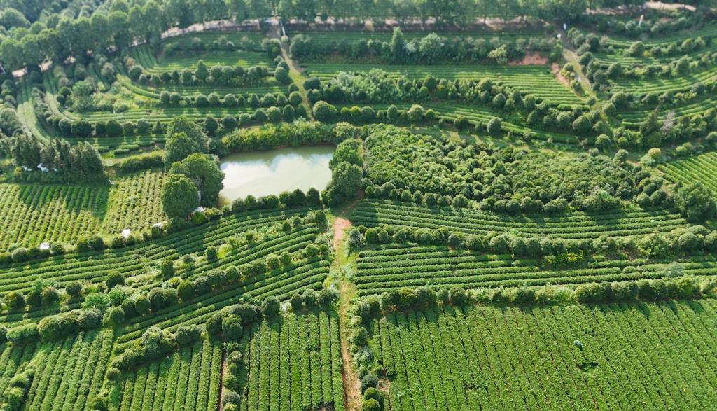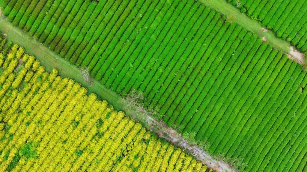 黄茆村的秋意分作两色,低处是稻浪翻涌的金,高处是茶园铺展的绿,稻穗垂首如缀满碎金的绸毯,茶树沿坡叠成阶梯,秋芽凝着晨露,阳光下一黄一绿,既是粮食的丰实,也是茶香的酝酿,写尽秋日里的双倍丰收。