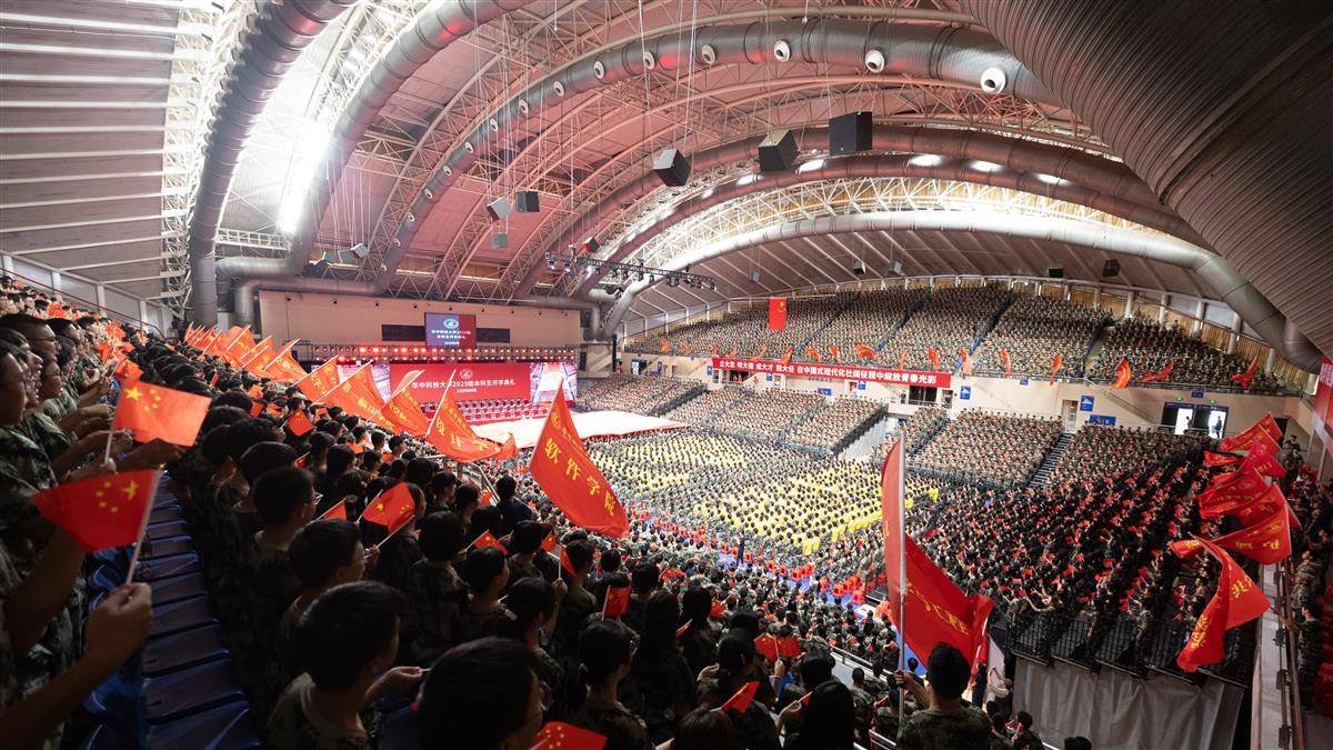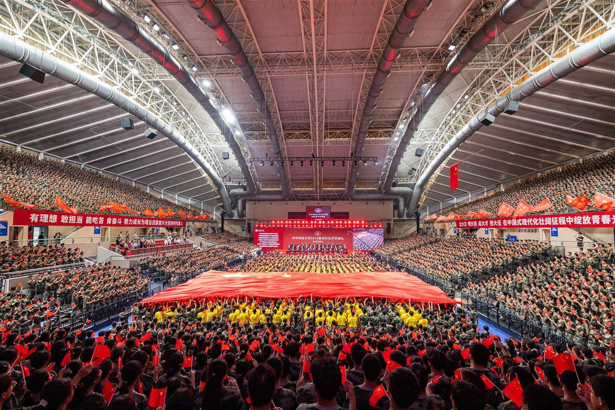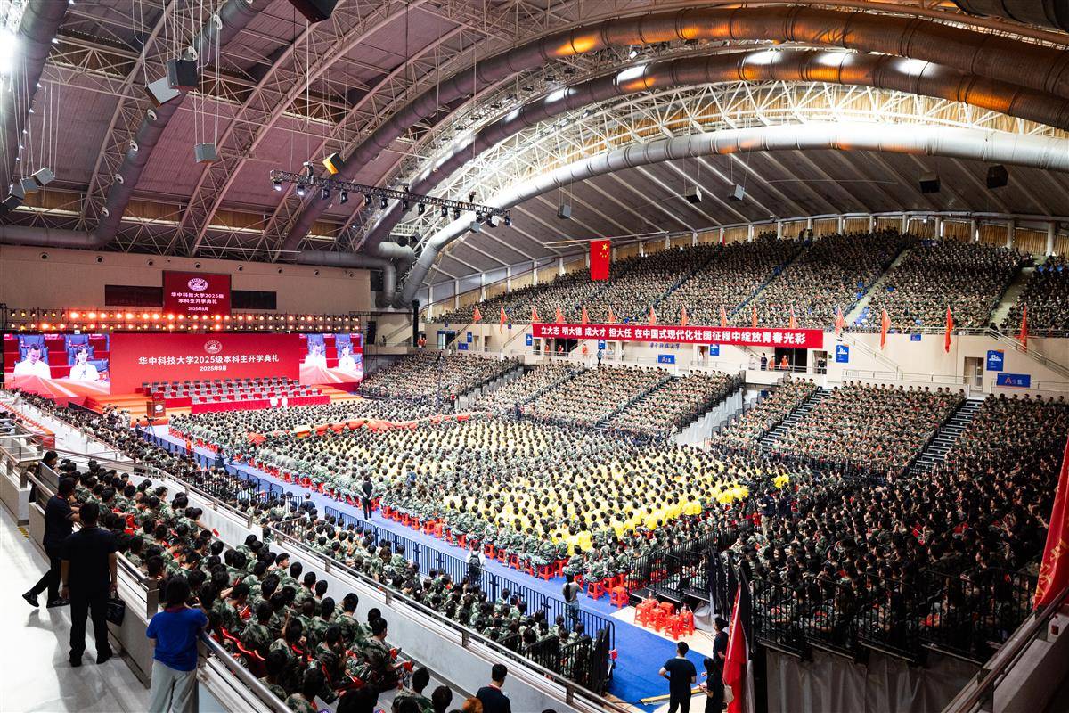 2025年9月11日,华中科技大学2025级本科生开学典礼在该校光谷体育馆隆重举行,全校师生合唱《歌唱祖国》《星辰大海》等歌曲,气氛十分热烈,处处洋溢着浓厚的青春气息。中国工程院院士、华中科技大学校长尤政激励广大青年学子树立远大理想,将个人理想融入国家发展大局,努力在科技创新的浪潮中成就一番事业。(湖北日报全媒记者 何宇欣 通讯员 左盈 班倩 摄)