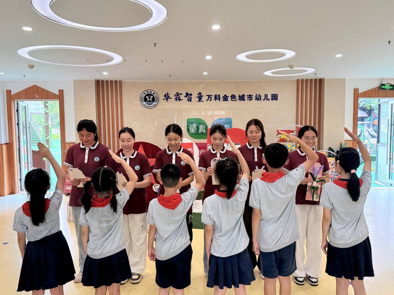 主会场活动结束,社区工作人员与学生代表分成三组,在金色童年幼儿园和金色城市幼儿园,花香敬师恩的感人场景再次上演。在社区老年大学,现场洋溢着温馨与感动,社区老年大学校长接过花束动情地说:“社区的这份心意让我们感受到教师这份职业的光荣与温暖。”