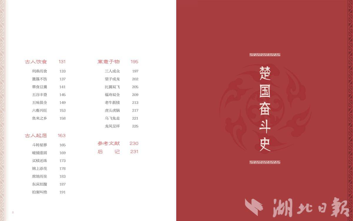 刘玉堂在序言中写道,湖北的历史文化源远流长,从百万年前的人类演化遗迹,到近现代社会的沧桑巨变,荆楚先民在这片土地上创造了大量成语,留下了无数文物。无论是了解荆楚文化还是中华文明,都离不开传世文献和考古发现。成语作为传世文献的精粹,承载着历史的记忆;而文物作为考古发现的瑰宝,凝聚着文化的精髓,它们共同见证了历史的沧桑和文明的演进,当二者相互碰撞时,定会迸发出璀璨夺目的火花。