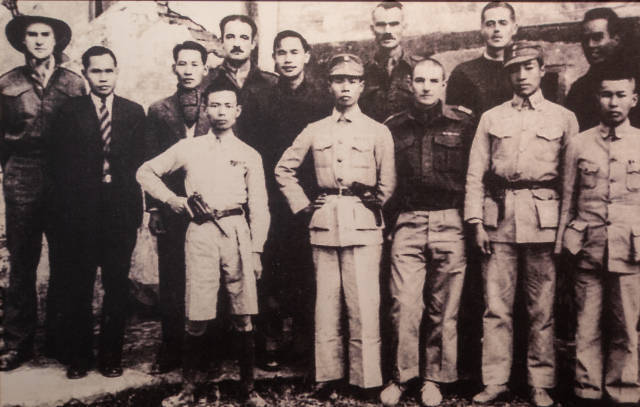 1943年12月,港九大队与英军服务团成员在营救美军飞行员后合影。