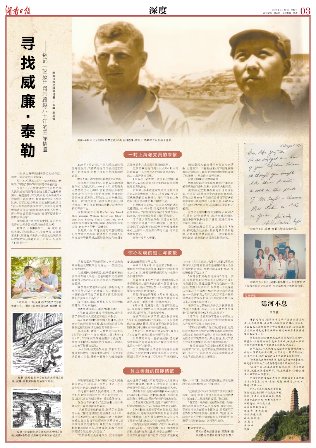 “虽然泰勒只是普通战俘,但他的经历生动诠释了中国共产党与国际友人并肩抗战的深厚情谊。”赵红说,抗战时期,中国共产党领导的部队不计代价地营救国际人士。