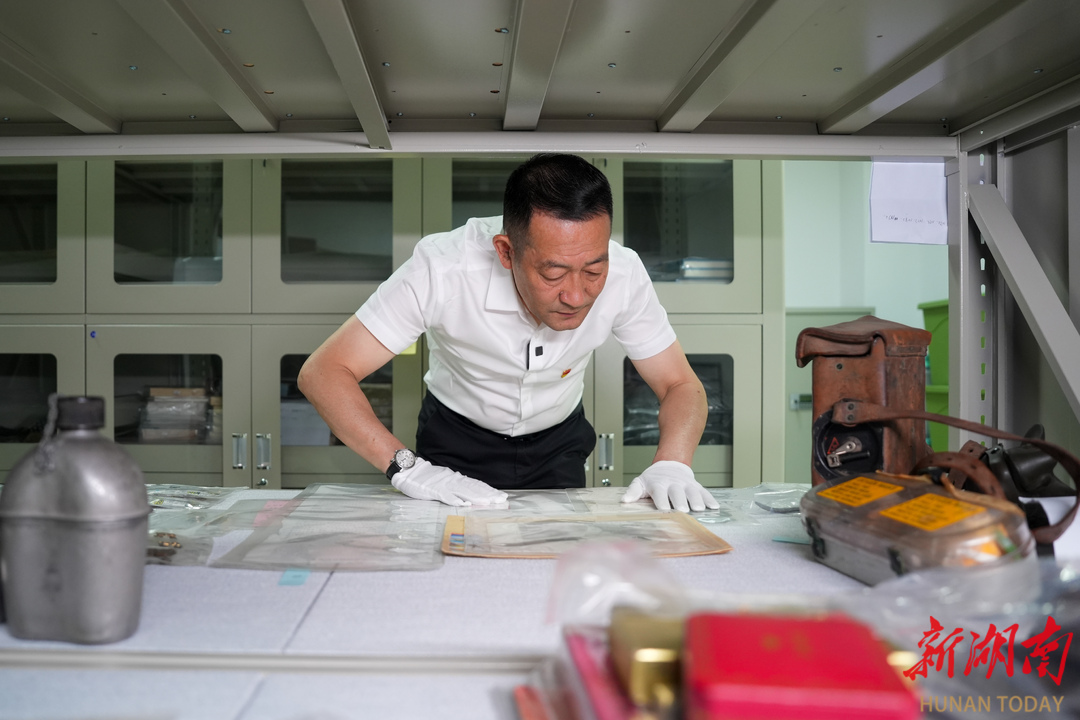 5月27日,吴建宏在库房整理沈宗桃捐赠的照片及其与泰勒的通信。湖南日报全媒体记者 辜鹏博 摄