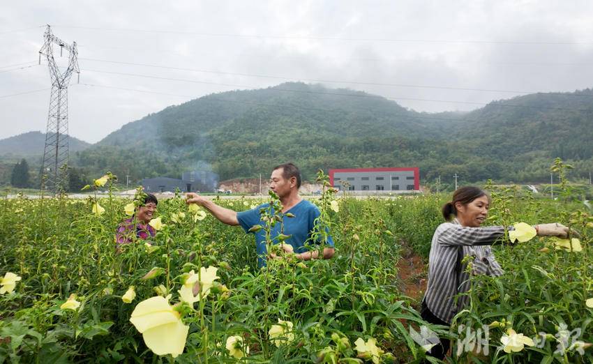 有合作社的订单兜底,在家门口就能稳定挣钱,这份“踏实”,源于河田村引入的“合作社+农户+订单”模式。2024年,村里携手崇阳鸿森农业专业合作社规模化种植黄蜀葵,不仅为村民提供种苗和技术指导,更通过签订长期订单,解决了农产品“销售难”的后顾之忧。