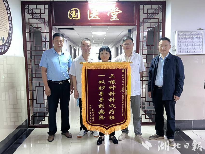 湖北日报客户端讯(通讯员 牟槲 秦琴 张孝林)9月12日清晨,均县镇卫生院中医康复科收到了一份特殊的“礼物”——一面来自患者赵女士的致谢锦旗。锦旗上“三根神针针穴疗经,一双妙手手到病除”的烫金大字,既是患者对科室诊疗服务的高度认可,更定格了医患之间的深厚情谊。
