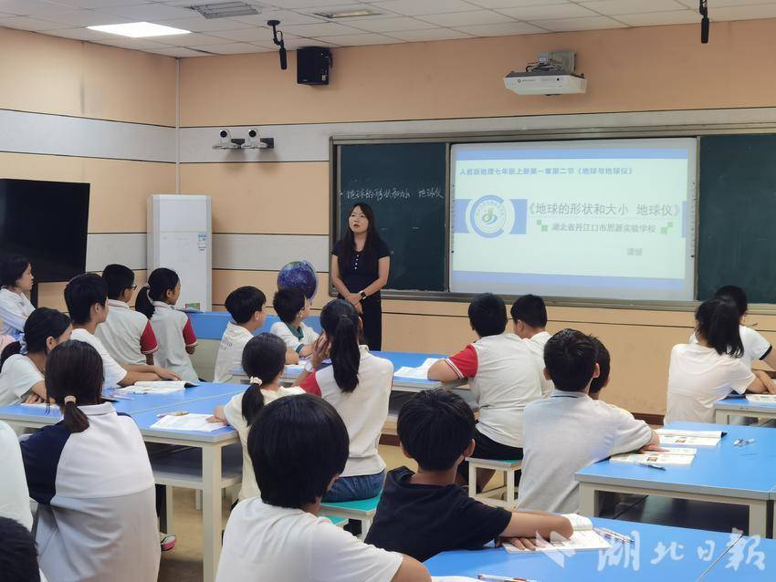 湖北日报客户端讯(通讯员 唐明山 王金涛 董斌)为加强城区地理教师间的教学交流,提升青年教师的专业素养,9月12日下午,丹江口市思源实验学校录播室内气氛热烈,一场聚焦七年级上册《地球的形状和大小、地球仪》的地理研讨课在此精彩上演,吸引了众多地理教师参与学习。