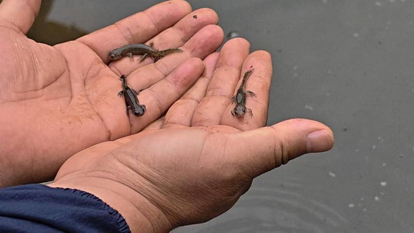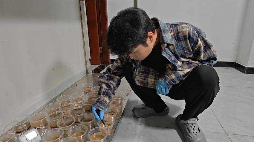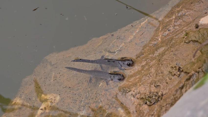 在繁育基地,科研与保护团队化身“护鲵使者”,华中师范大学生命科学学院研究生翟永杰便是其中一员。为了做好中国小鲵的人工辅助繁育工作,他已扎根崩尖子一年多,从卵泡培育到幼体监测,每一个环节都亲力亲为。“中国小鲵仅在长阳少数地方有分布,而且数量比较稀少,希望大家都能一起保护它,不打扰、不破坏,别让这个珍贵的物种从世界上消失。”翟永杰的话语里满是对这一物种的珍视。团队为小生命打造了接近野外的生存环境,严格调控水温至适宜区间,保持空气湿度稳定,模拟自然光照节律,甚至连饵料都选用与野外环境一致的天然食材。30天的精心守护换来了惊喜——4月中旬,2017尾幼体成功破卵而出,孵化率远超预期。随后的130天里,团队更是全程精细化管护,翟永杰和同事们定期监测幼体的生长发育、健康状况,及时防控病害风险。从微小的幼体到具备野外生存基础的亚成体,每一步成长都凝聚着他们的心血。最终成活1236尾,61%的成活率充分证明了人工繁育技术的可靠性,也印证了他们坚守的价值。