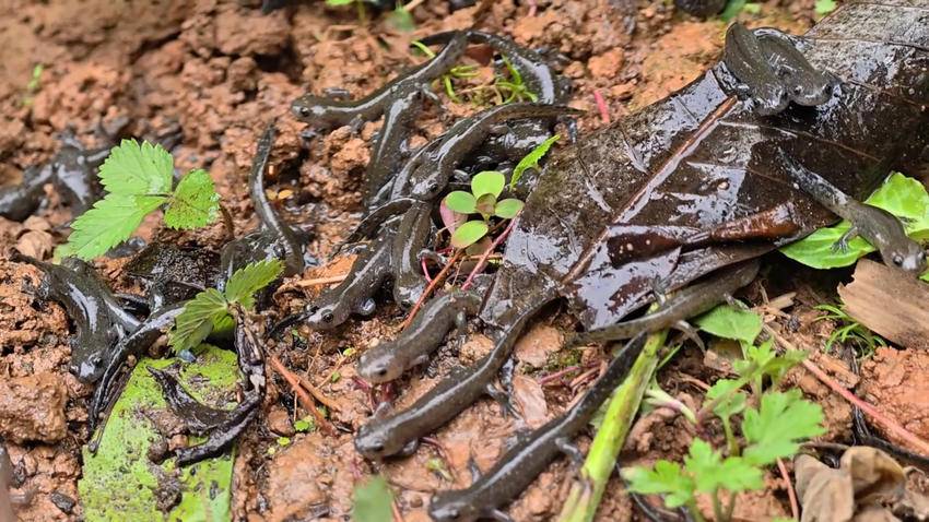 时间回溯到2022年3月,保护行动的序幕正式拉开。为守护中国小鲵这一珍稀物种,保护区启动特种救护人工辅助繁育专项工作。工作人员深知,野生基因的纯度与适应性是繁育成功的关键,他们冒着早春的寒意深入野外核心区,仔细排查每一处潜在栖息地,最终精准采集到20对健康的中国小鲵卵泡。这些承载着物种延续希望的卵泡,被第一时间送往保护区内的“国家级自然保护区中国小鲵拯救繁育基地”,开启了科学培育的新征程。