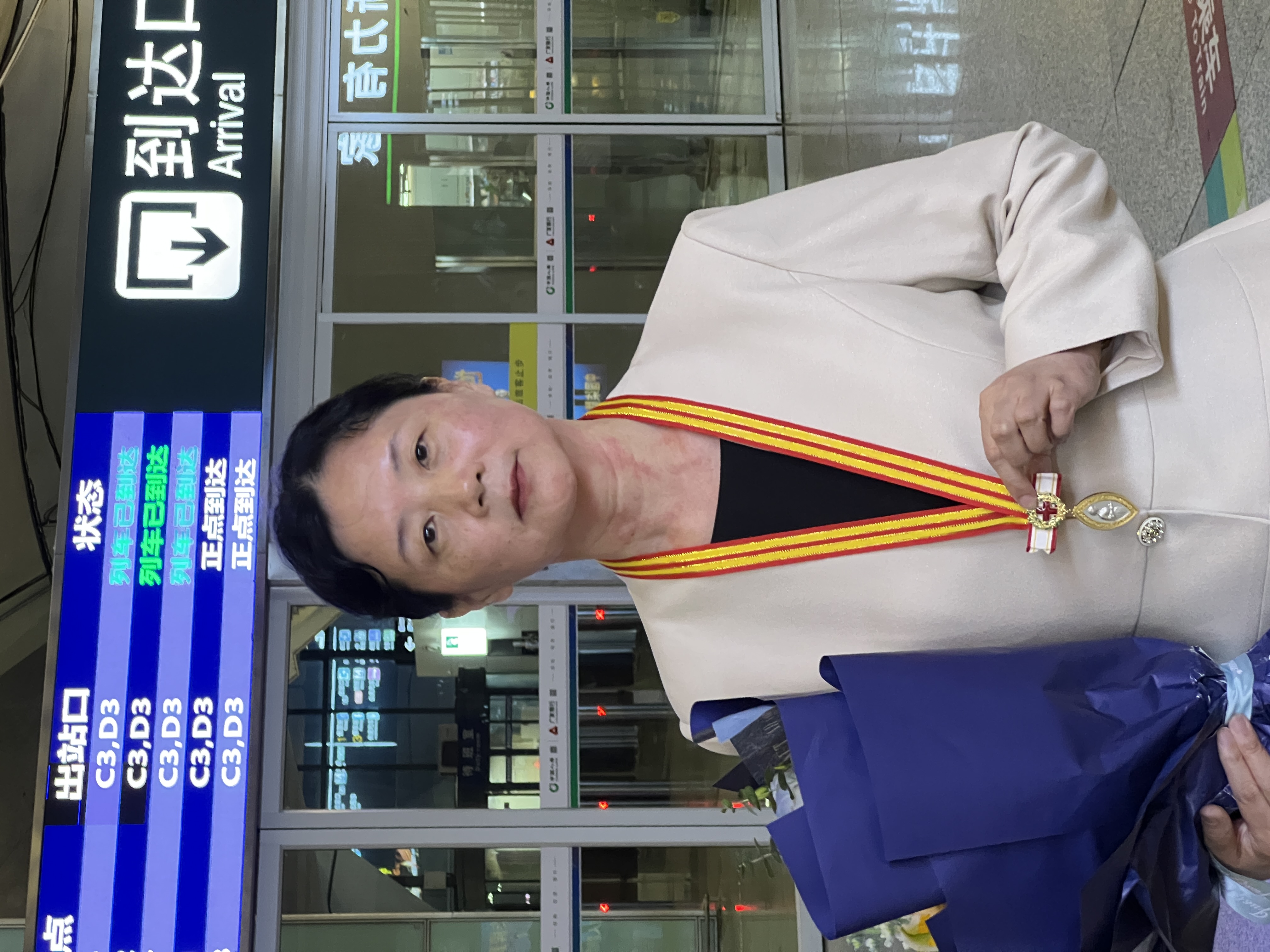 当晚8时34分,冯玲乘坐G505次高铁载誉而归,医院同事们自发前来接站。大家手持鲜花,拉起欢迎横幅。