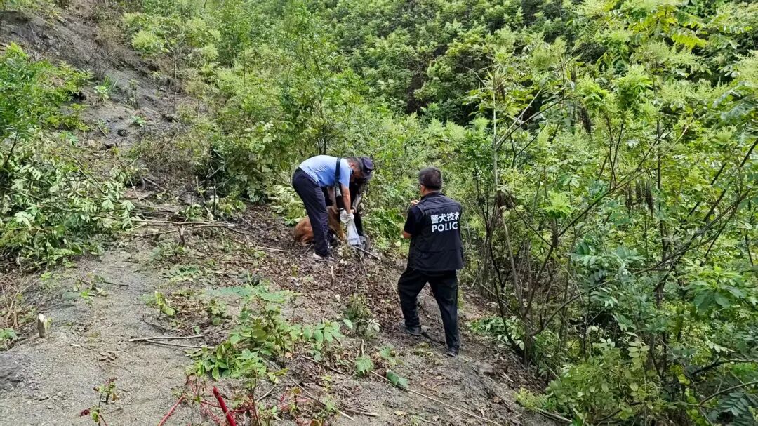 “汪!汪!”几分钟后,一只警犬突然朝着山林深处狂吠,所有人立刻屏住呼吸,朝着警犬指引的方向跑去。