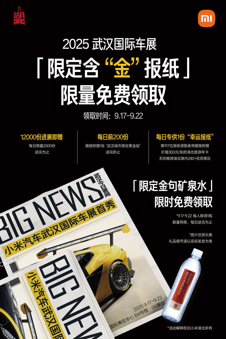 此外,小米汽车还联动湖北文旅,打造湖北文旅自驾定制“报纸”,其中不仅包含湖北省内众多景点景区自驾路线,更可一览小米汽车购车权益,并有机会兑换印有黄鹤楼的足金黄金贴。