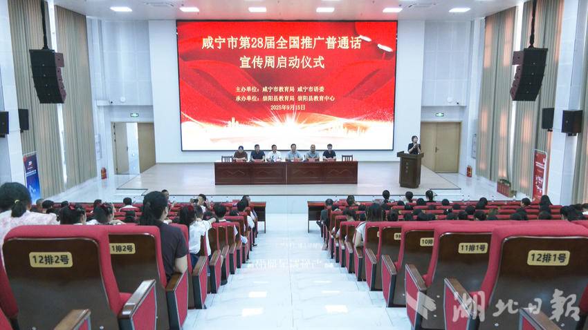 湖北日报客户端讯(通讯员储璐瑶 胡仕涵 庞书聘)2025年9月15日至9月21日是第28届全国推广普通话宣传周,主题为“加大国家通用语言文字推广力度,促进铸牢中华民族共同体意识”。9月15日,咸宁市第28届全国推广普通话宣传周启动仪式在崇阳县教育中心举行。本次活动由咸宁市教育局、咸宁市语言文字工作委员会联合主办,崇阳县教育局、崇阳县语言文字工作委员会承办,崇阳县教育中心协办。