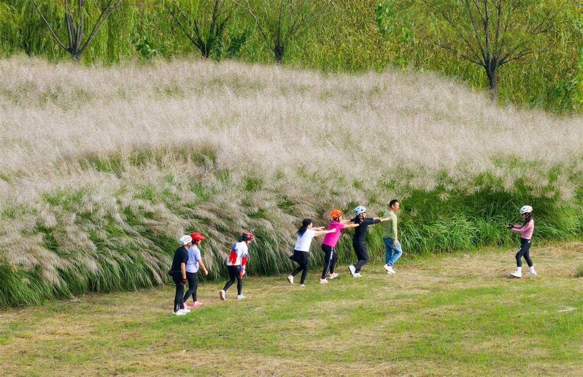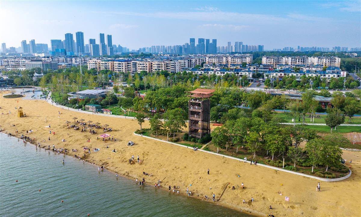 9月13日,襄阳市鱼梁洲滨江风貌区水清岸绿,风景如画,引得众多市民前来休闲游玩、乐享秋日。