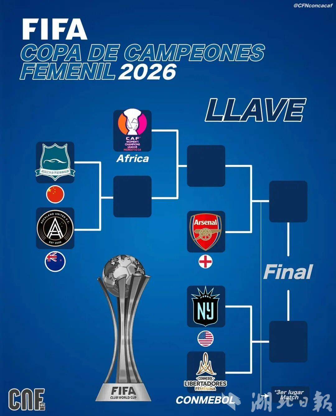 此前,国际足联(FIFA)正式公布2026年国际足联女足冠军杯赛程,并确定首轮赛事场地为武汉体育中心。