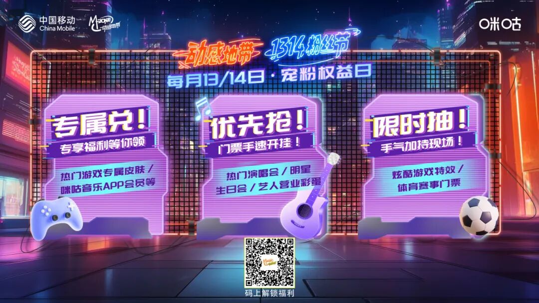 为深化与年轻用户的联结,动感地带打造用户专属“1314粉丝节”,每月13日至14日为用户送上专属福利,包括热门游戏皮肤、咪咕音乐会员,更有演唱会门票优先抢、体育赛事门票限时抽等权益。“1314”不仅是日期,更寓意着品牌“长久陪伴”的承诺,通过持续的宠粉行动,妥妥戳中年轻群体的兴趣点。